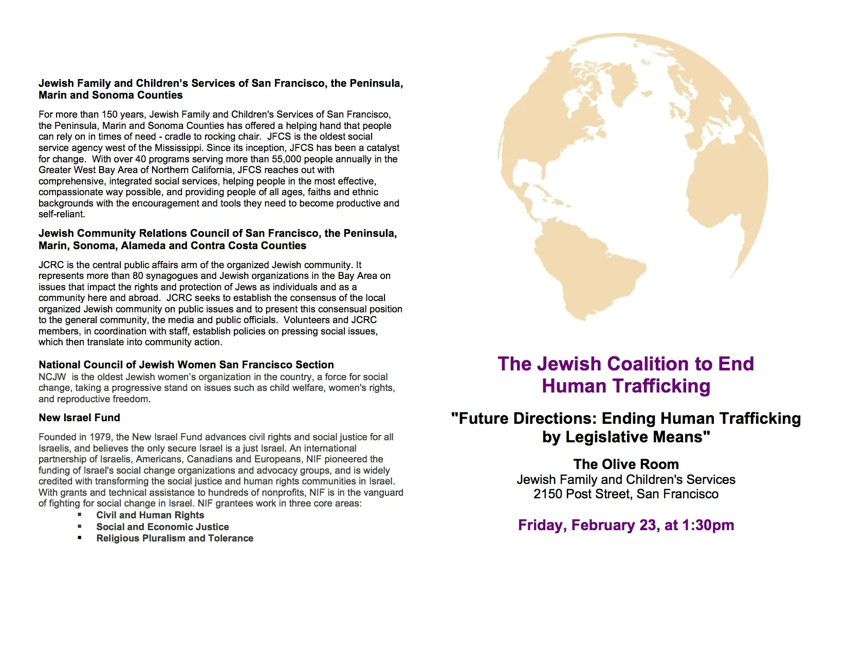 Co-sponsored by the Jewish Coalition to End Human Trafficking & National Council of Jewish Women of San Francisco